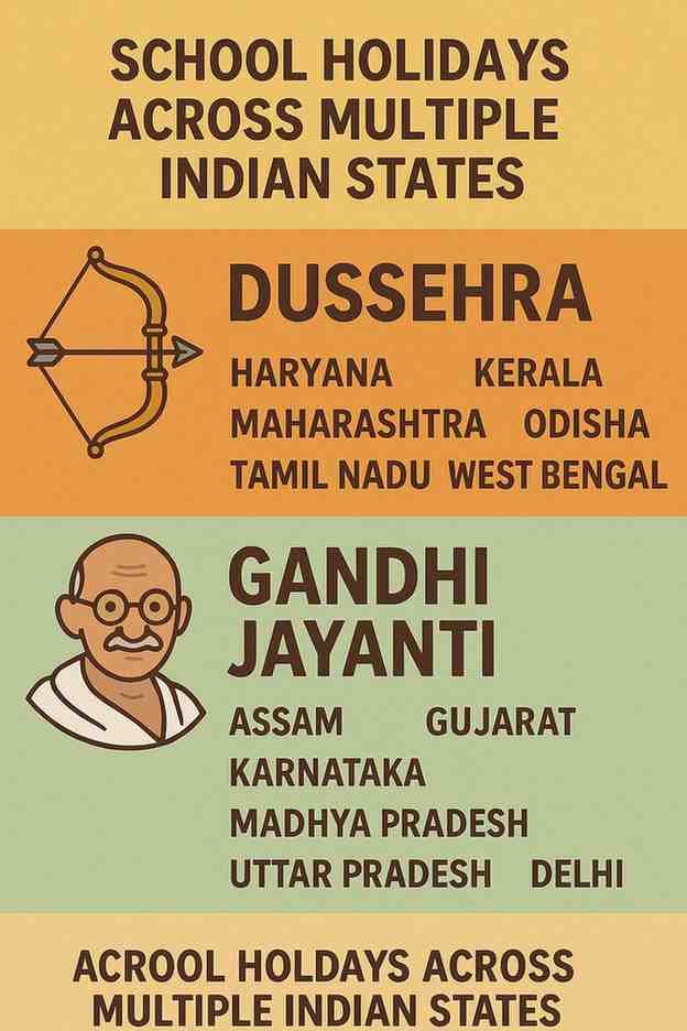 The first week of October 2025 promises a colorful blend of national pride and festive joy as schools remain closed across multiple states for Dussehra, Gandhi Jayanti, and Durga Puja. While these holidays vary in length from state to state, the essence remains the same—providing students with space to celebrate, rejuvenate, and reconnect with traditions that shape India’s cultural identity.