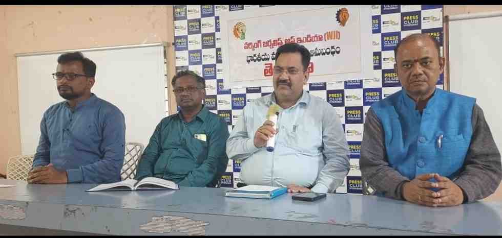 Other key WJI members present at the press meet included State President Rana Pratap, General Secretary Ravikanti Srinivas, Vice Presidents Anil Desai and Siddireddy Srinivasa Reddy, Secretary Kranti, and Hyderabad City President Balakrishna.